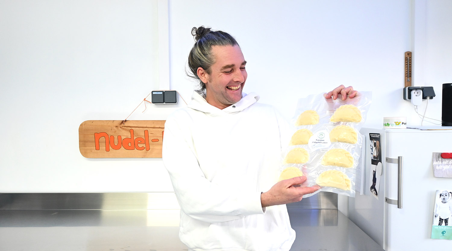 Die Verbundenheit mit der Natur und der Heimat spiegelt sich auch im Sortiment seiner Kärntner Nudel wider. Michael erzählt: „Meine Standard-Nudel sind Käsnudel, Kartoffelnudel und Fleischnudel. Das Sortiment ergänze ich je nach Jahreszeit und je nachdem, welche Zutaten gerade in bester Qualität verfügbar sind. Zum Beispiel mit Schwammerlnudel oder Wildfleischnudel.“