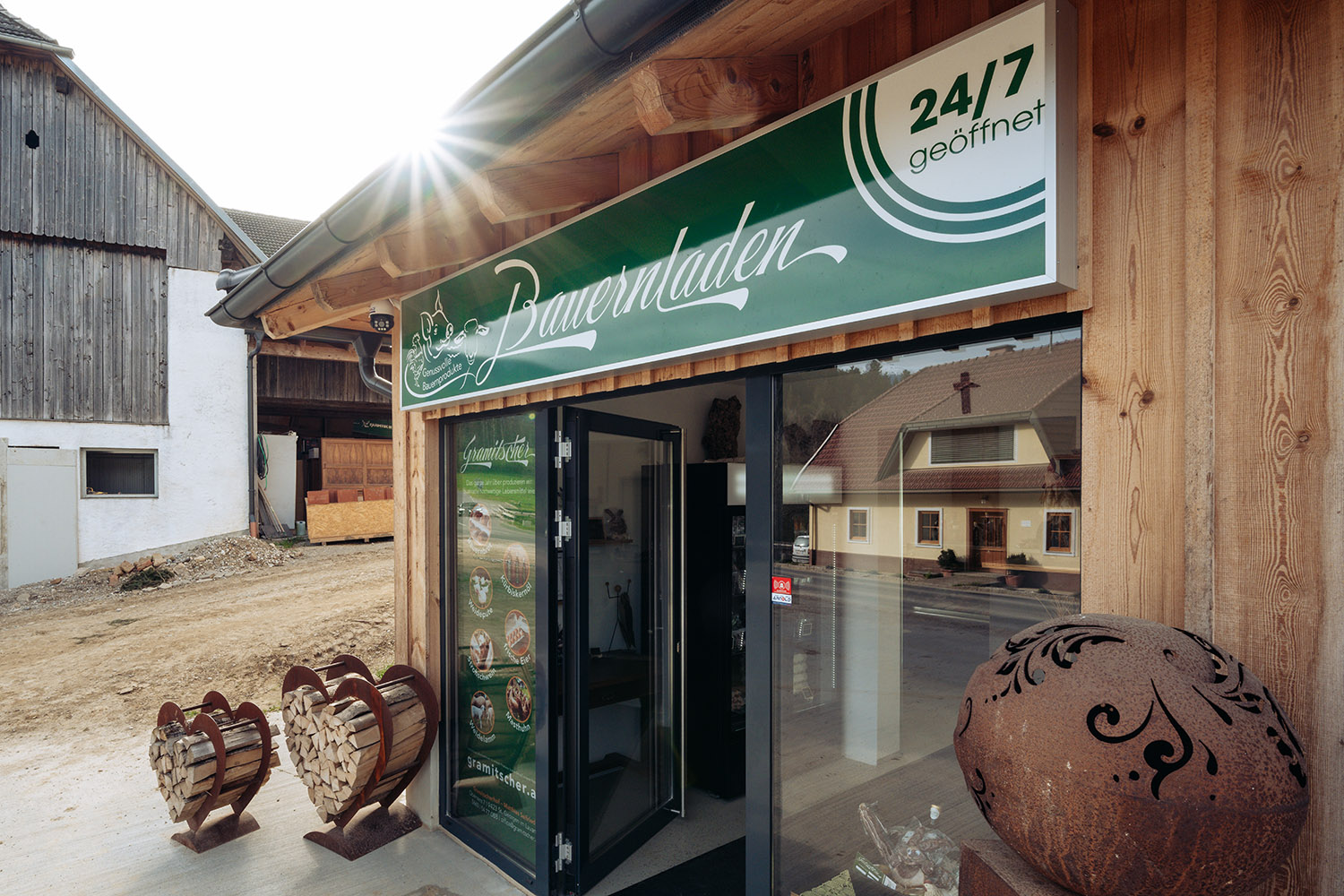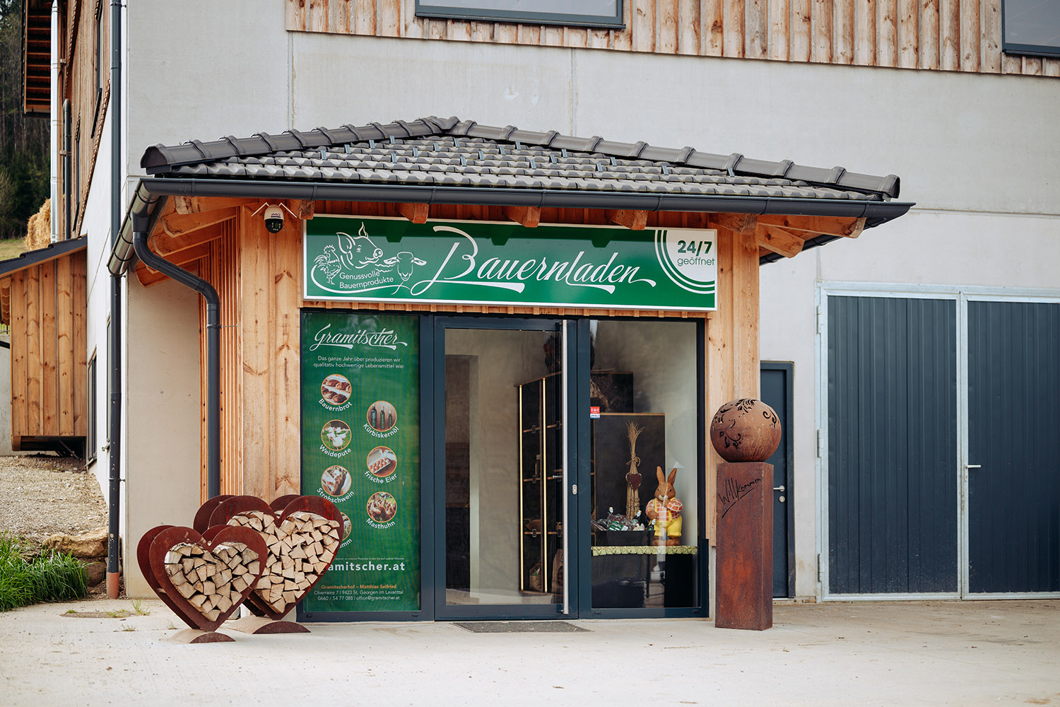 Zum Frischfleisch-Angebot kommen Dauerwaren wie Speck, Würstel und Salami, dazu 100 % reines Kürbiskernöl. Und natürlich Brot. Jenes Brot, das am Gramitscherhof seit Generationen gebacken wird. Die Leidenschaft dafür geht auf die Oma zurück, die das Backen in den 1980er-Jahren zur Herzenssache machte. Heute führt Matthias dieses Wissen weiter. „Unser traditionelles Gramitscher Brot besteht aus einer Mischung aus Roggen- und Weizenmehl, einer fein abgestimmten Gewürzmischung und natürlich unserem hofeigenen Sauerteig“, erklärt er. Beim Vollkornbrot kommen Roggenschrot, Sonnenblumenkerne und Sesam hinzu. Kräftig, aromatisch und ehrlich.