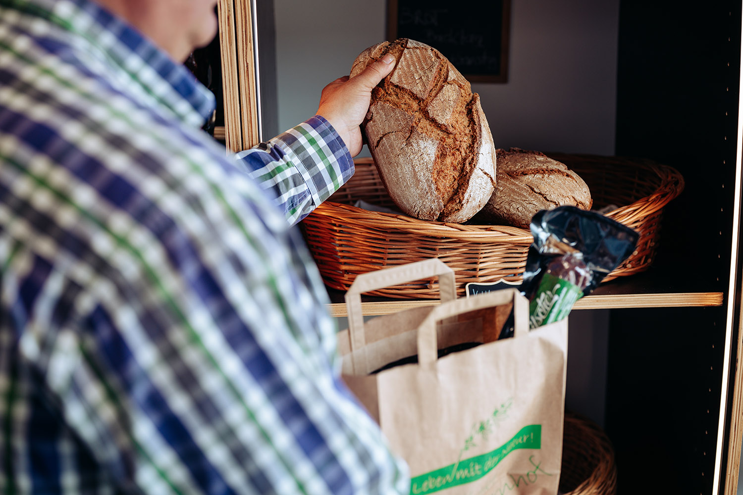 Im Hofladen finden sich alle hofeigenen Produkte sowie Honig und Kartoffel von befreundeten Höfen aus der Region. Regionalität wird hier nicht beworben, sie wird gelebt.
