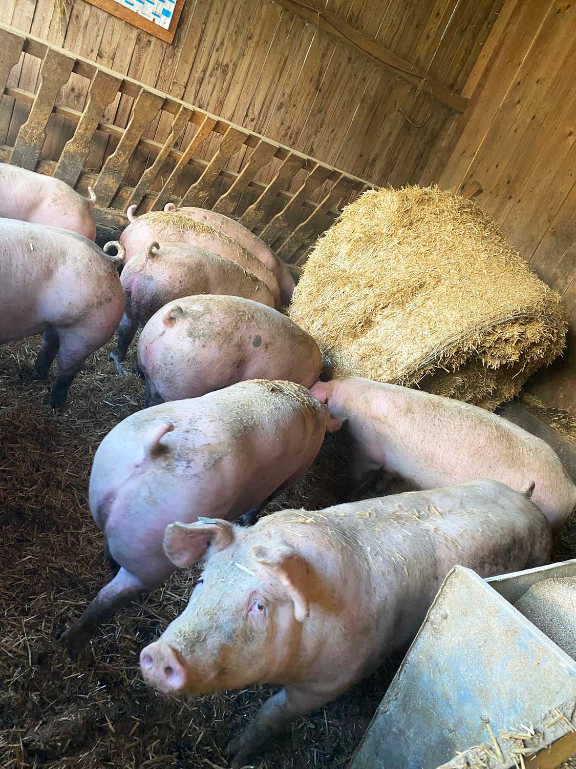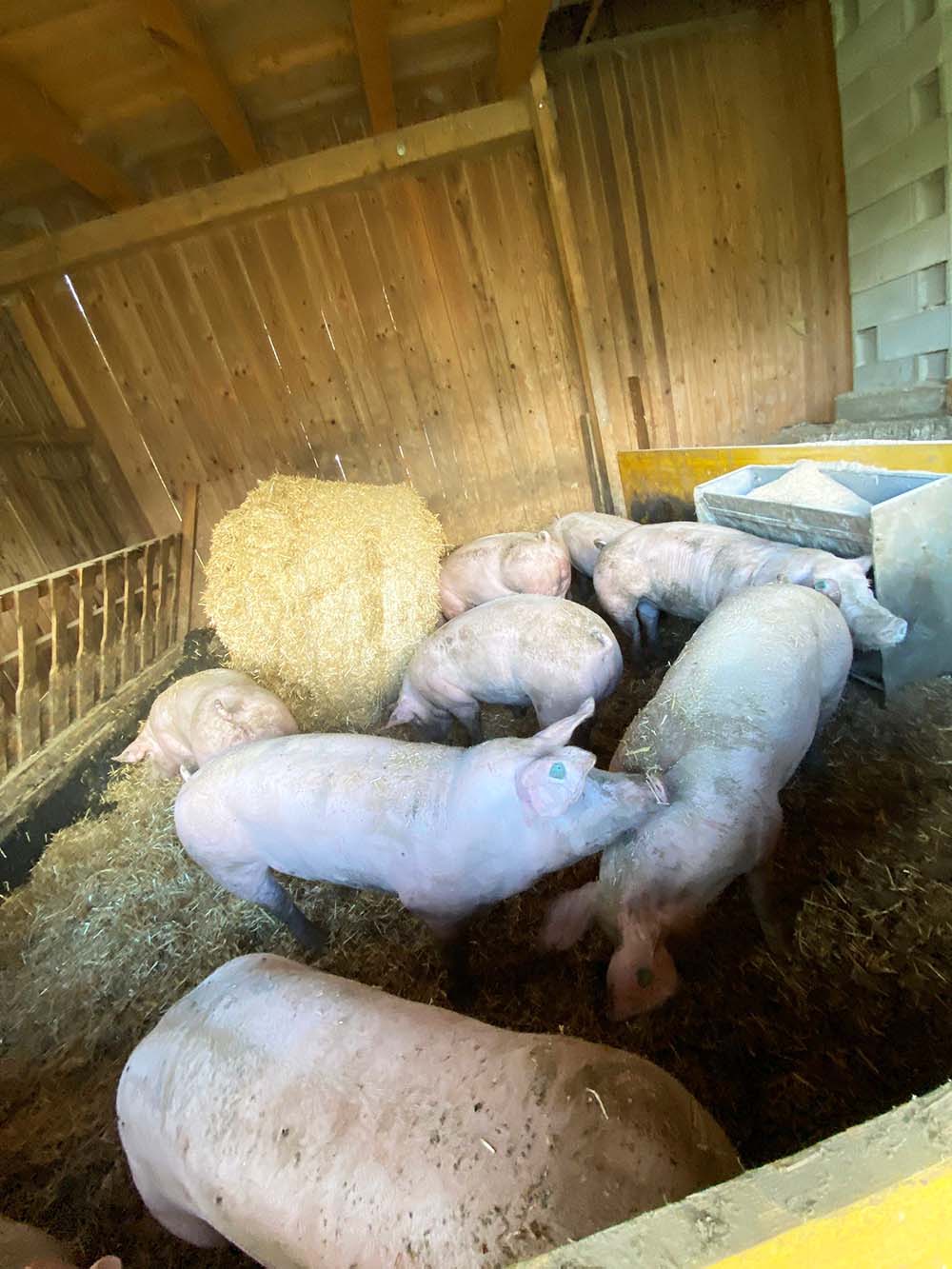 2021/22 wurde ein moderner Stall fertiggestellt. Damit wurde ein weiterer Schritt in Richtung zukunftsfähige, tiergerechte Landwirtschaft. „Der Stall erfüllt alle modernen Standard und darüber hinaus“, erzählt Matthias stolz. „Er bietet reichlich Platz für die Tiere, inkl. Auslauf ins Freie und es wurde ein 24-Stunden-Hofladen integriert. Im „alten Stall“ lebt das Geflügel, im neuen die Schweine, die Schafe und die Rinder.