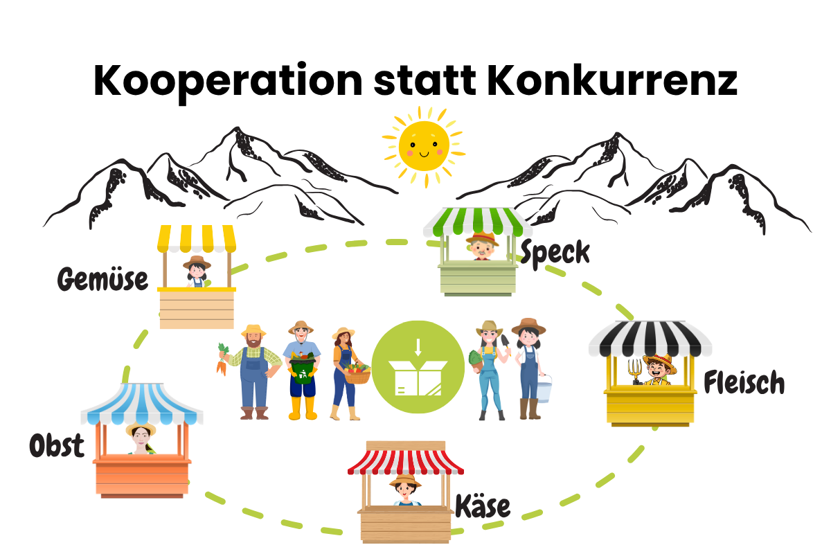 Dabei denken wir Regionalität neu: Unsere Plattform ermöglicht KOOPs, also Kooperationen zwischen Betrieben einer Region. Bestellungen werden gemeinsam versendet, was Kosten spart, die Umwelt schont und den Zusammenhalt in der regionalen Wirtschaft stärkt.